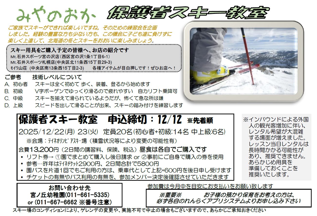 < 2025/ 12/ 22-23 保護者スキー教室「初心者・初級」お申込みフォーム 入口 >