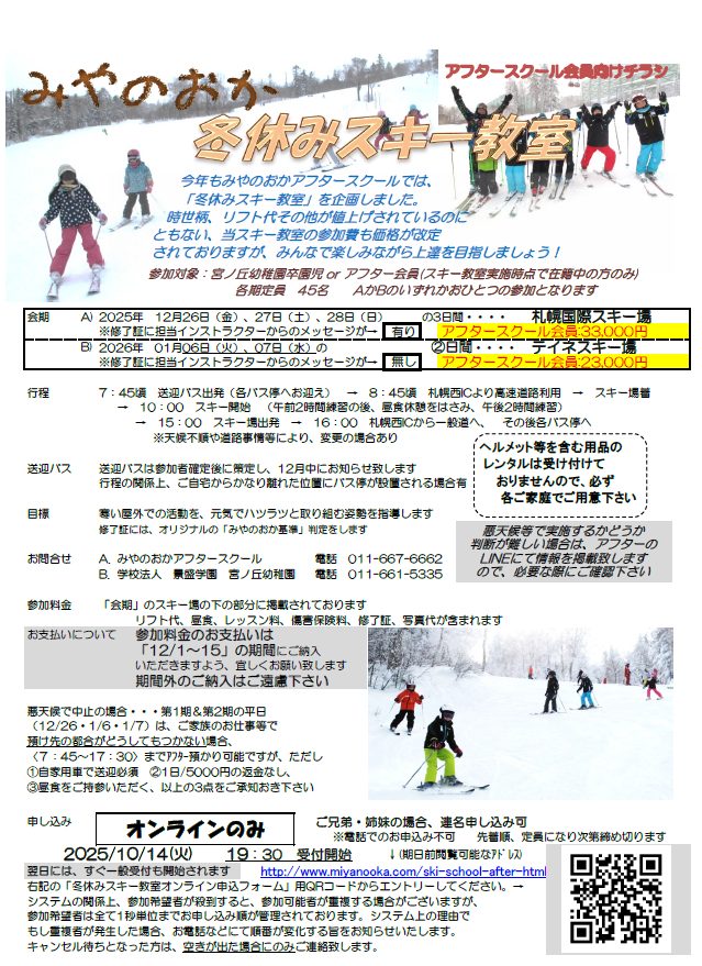 《 第1期スキー教室の申し込みはこちらから! 》→12/26-28 国際スキー場 3日間